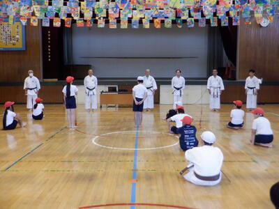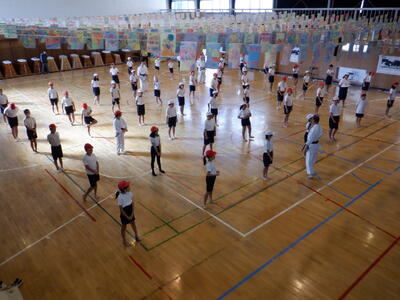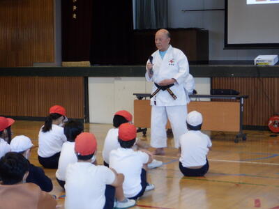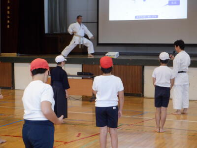 今日は、日野市空手道連盟の皆様を講師とした、5年生対象の空手道体験教室が行われました。