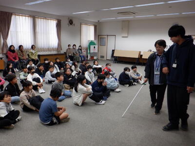 盲学校での経験なども教えていただき、子供たちも興味をもって聞いています。