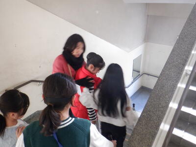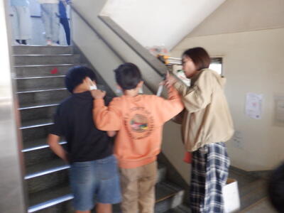 また、あまりにもリアルなため低学年の影響が大きいと考え、2階の廊下は訓練で使わなかったのですが、実際には昇降口に近い2階の低学年の教室の方が危ないため、低学年の子も身の守り方をしっかり覚えるよう伝えました。