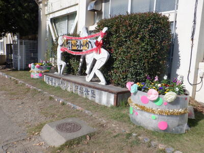 展覧会の開催に合わせ、校舎前の花壇では、JSP、潤ファミ店員の方々による寄植えの植栽活動が行われました。