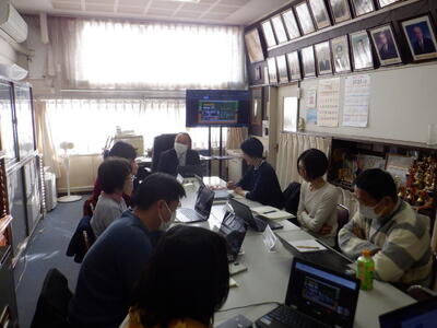 都合で来校できない店員の方も、校外から接続し、会議に参加し、意見等を述べています。