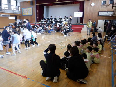 楽団の方々には、子供たちの入場が終わるまで、「さんぽ」をはじめ、様々な曲をメドレーで演奏していただき、温かく迎えてくださいました。