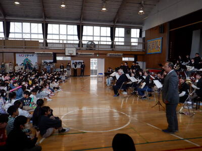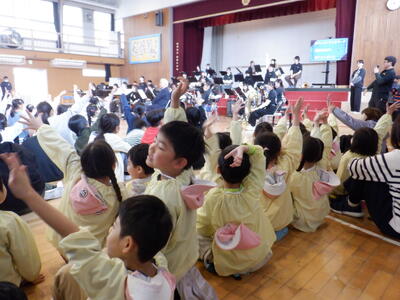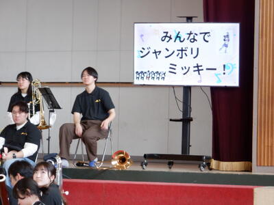 そして、全校で練習してきた「ジャンボリミッキー!」を楽団の方々と一緒にセッションします。