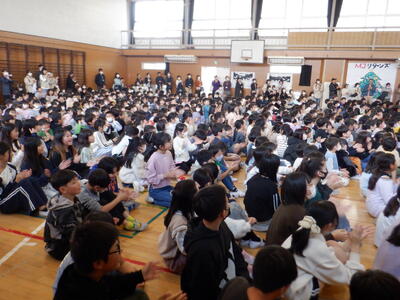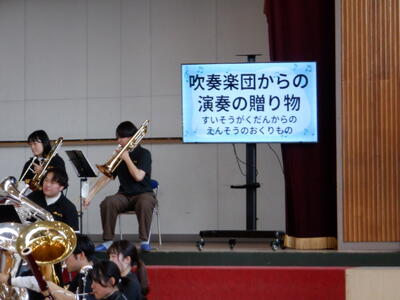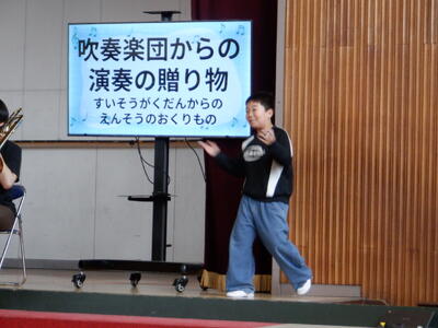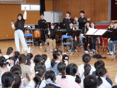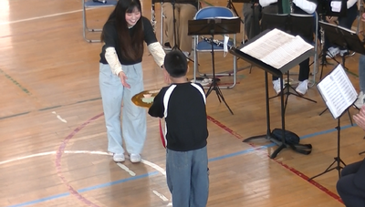 最後は、事前に全校児童にアンケートをとった「演奏していただきたい曲」を踏まえ、楽団の方々が「Mrs. GREEN APPLEヒット曲メドレー」を演奏してくださいました。