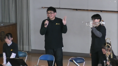 最初の校長挨拶で、楽団の方々が「第73回全日本吹奏楽コンクール大学の部」で銀賞を受賞されたことをあらためて紹介すると、会場中から大きな拍手が起きました。