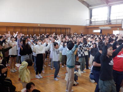 司会をしていた児童会本部役員のMJリーダーも思わず壇上でダンス!