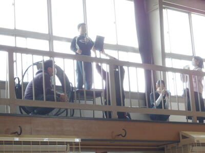 記念撮影の都合上、児童会本部役員のMJリーダーからの終わりの挨拶は、2階のギャラリーからです。