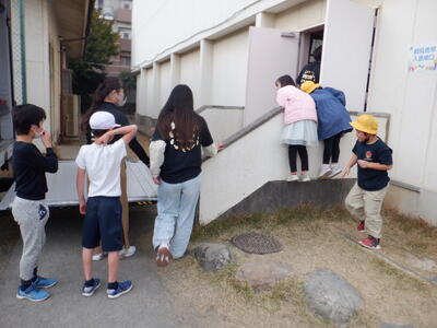 本校の隣の「たかはた北保育園」の年長児たちも遊びに来てくれました。