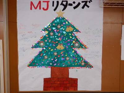 会場内を飾った、児童会本部役員の作成した「MJリターンズ!」の掲示には、楽団の方々の寄せ書きが残されていました。