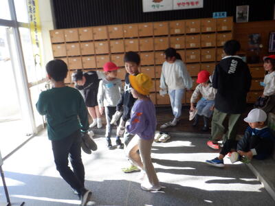 5年生の放送委員がアナウンスとともにテーマ曲「さんぽ」を流し、5年生が1年生を活動場所に連れていく・・・