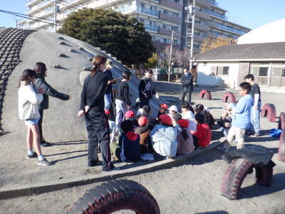 今日は、冬にもかかわらず、風も穏やかで、日差しの温もりを感じる外遊びには絶好の日です。