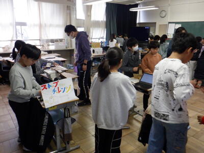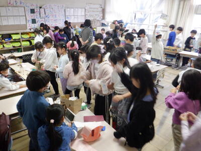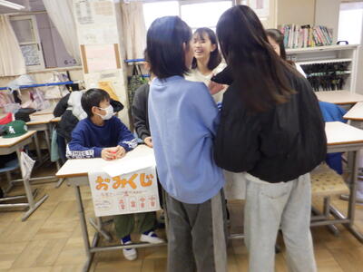 5年生は学年レクとして、各学級で出している様々な「お店」を学級を越えて遊べる活動に取り組んでいました。