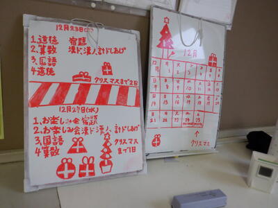 学級内の連絡ボードがクリスマスモード全開になっている学級もあります。