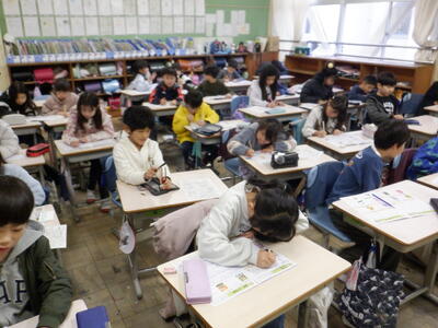 BINGO大会に取り組んでいる6年生のお楽しみ会。