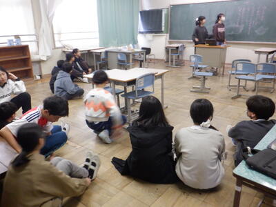 いつものたて割り班開始の光景ですが、ちょっと違うのは、6年生の姿が見えないこと。