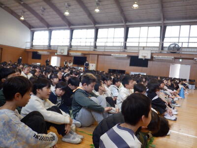 昨日の緊急放送での「ドッキリ集会」の開催告知を受け、いつものように、半自動的に体育館に集まってくる子供たち。