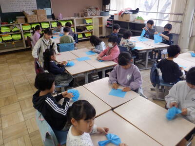 1年生は、いそいそとお花作りに取り組んでいました。