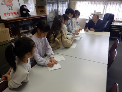 中休みになると、サインを求める子供たちが校長室に殺到します。