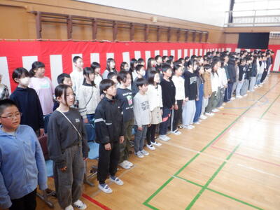 式の最後は、5・6年生による校歌斉唱です。