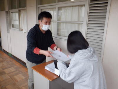 本番同様、校長から一人一人に手渡す練習をします。