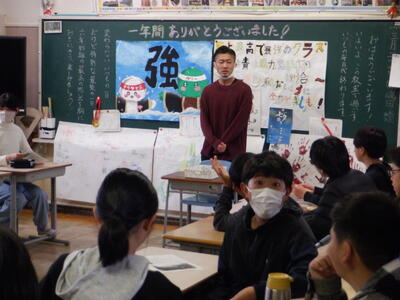 とは言っても、ちょっと雰囲気を変えて、本校で今年度限りとなる職員の最終勤務日だったため、お別れの挨拶を行いました。