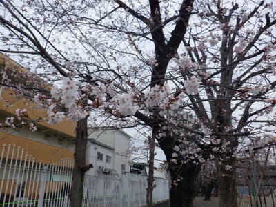 一気に咲き始めた校庭の桜の花に見守られ、今年度の最後を迎えようとしています。【校長】
