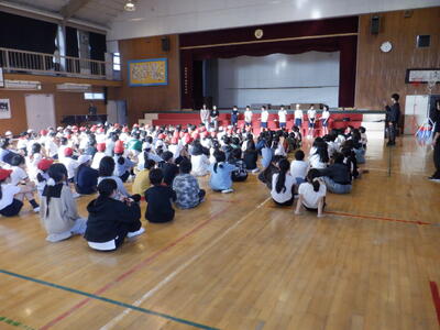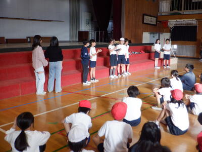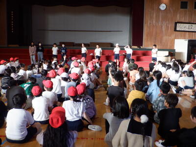 5年生実行委員代表「私たちは、来年一緒に高学年になります。今から仲良くなると、よい潤徳小にできるはずです。これからも協力していきましょう。」