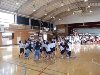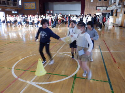 今のうちにゲームを通して仲良くなり、これからの潤徳小を引っ張っていく気持ちを高めるための会です。