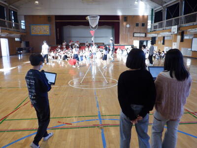 「ジャンボリミッキー!」のダンスは、児童会本部役員の担当児童が見本動画を作成し、各学級に配信しています。