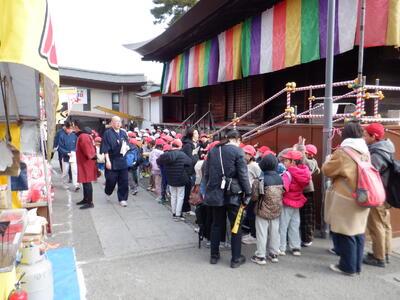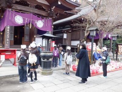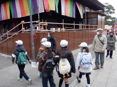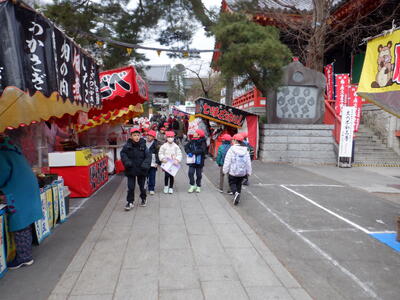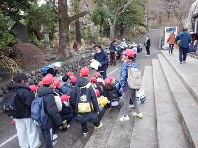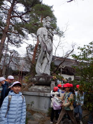 今日は、3年生が総合的な学習の時間で調べ始めている「高幡不動尊博士になろう」の学習を進めるため、実地見学を行います。
