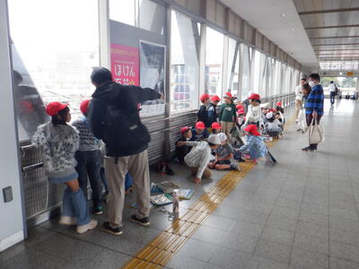 高幡不動駅の自由通路のところにも2年生たちが集まっています。