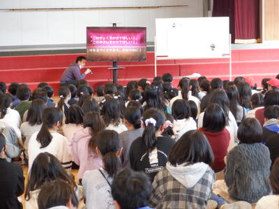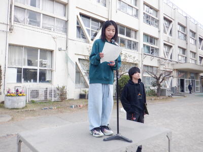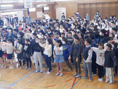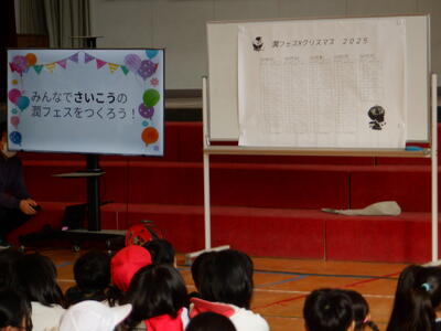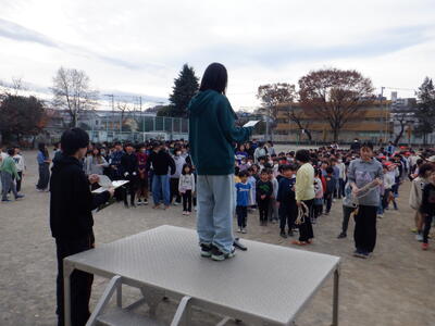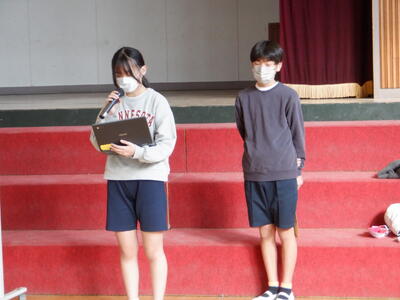集会の進行は、児童会本部役員会の「潤クリ」担当児童たちです。