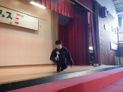 今回の「潤クリ」は、あまりにも出場希望者が多いため、今まで設けられていた「教員枠」がありませんでしたが、今日は、開催前に「前座」として、けん玉が特技の教員が技を披露。