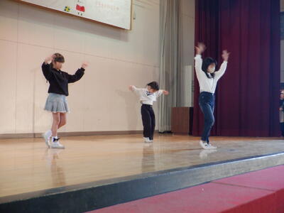 3番目は2年生3名による、Snow Manの「カリスマックス」の曲に乗せたダンスです。