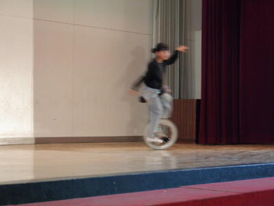 後半は、いったんステージ横に下がったと思うと、一輪車で登場!