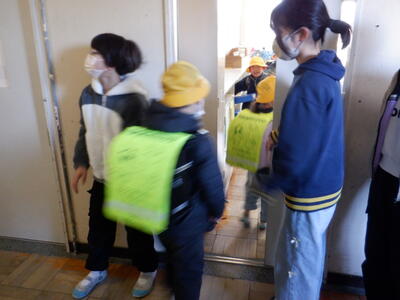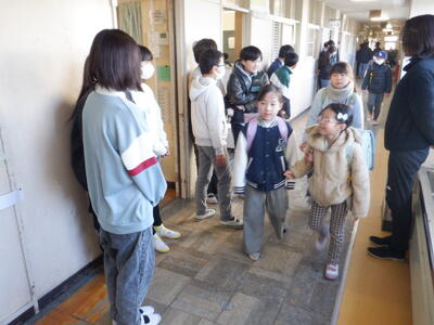 2年生も6年生と挨拶です。