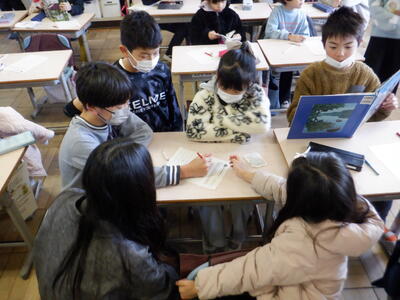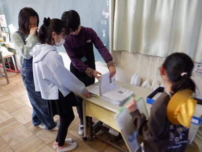プリントを持っている子たちがいます。