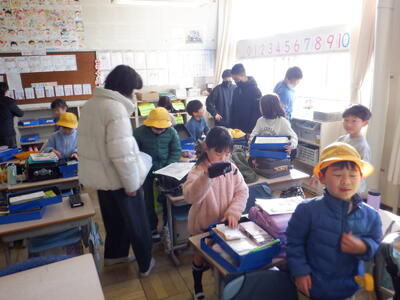 学級によっては、6年生と一緒に遊んだり、節分なので鬼の面作りの手伝いをしたりする活動もありました。