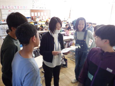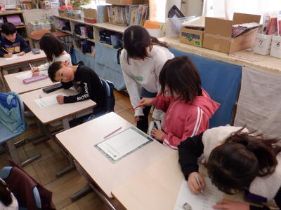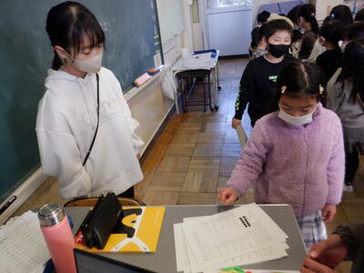 と思ったら、6年生が2年生の担任に答えの確認をしています。