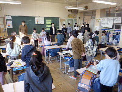 学級の子供たちのお礼を受けて、初日の「ミニ先生」の仕事は終了です。