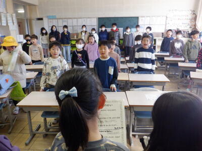校長「6年生は挨拶名人だから、6年生に負けないような大きな声で元気に挨拶しようね。」