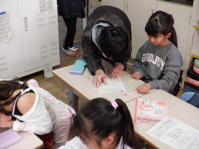 今週、「出張ミニ先生」は3回計画されているので、今日は、低学年のサポートの様子をお伝えします。