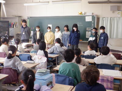 今朝は、「卒業プロジェクト」の一環である、6年生による3回目の「出張ミニ先生」の取組が行われました。