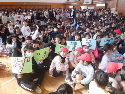 観客の子供たちもリズムに合わせて手拍子をしたり、掛け声をかけたりしています。