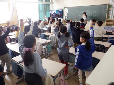 本校からの質問にも答えてもらうなど、互いに積極的な交流が行われました。(八小から見た交流の様子は、こちら)