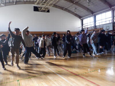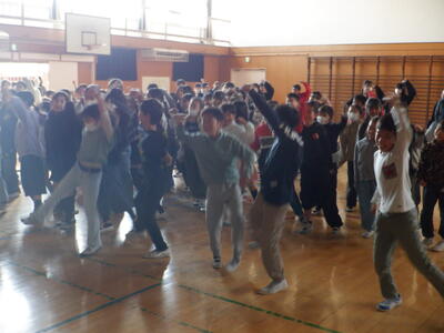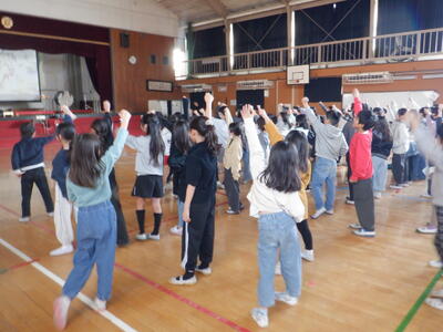 「ジャンボリミッキー!」のダンスは、児童会本部役員の担当児童が見本動画を作成し、各学級に配信しています。
