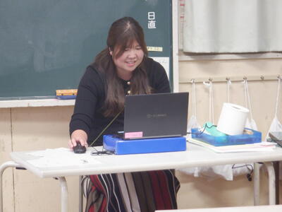 スライドを画面共有をしながら、2学期の振り返り、冬休みの過ごし方などについて説明させていただきました。