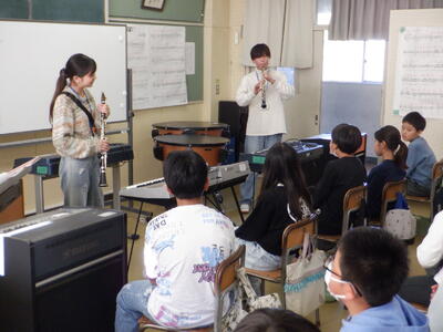 団長の方の専門楽器のクラリネット、今日、初めて来校いただいた団員の方のオーボエの演奏披露です。