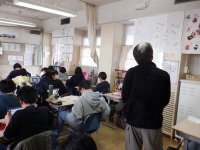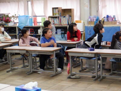 教室で聞いている子供たちも興味津々。