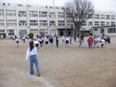 6年生(6-1)たちと「だるまさんが転んだ」で遊ぶためです。